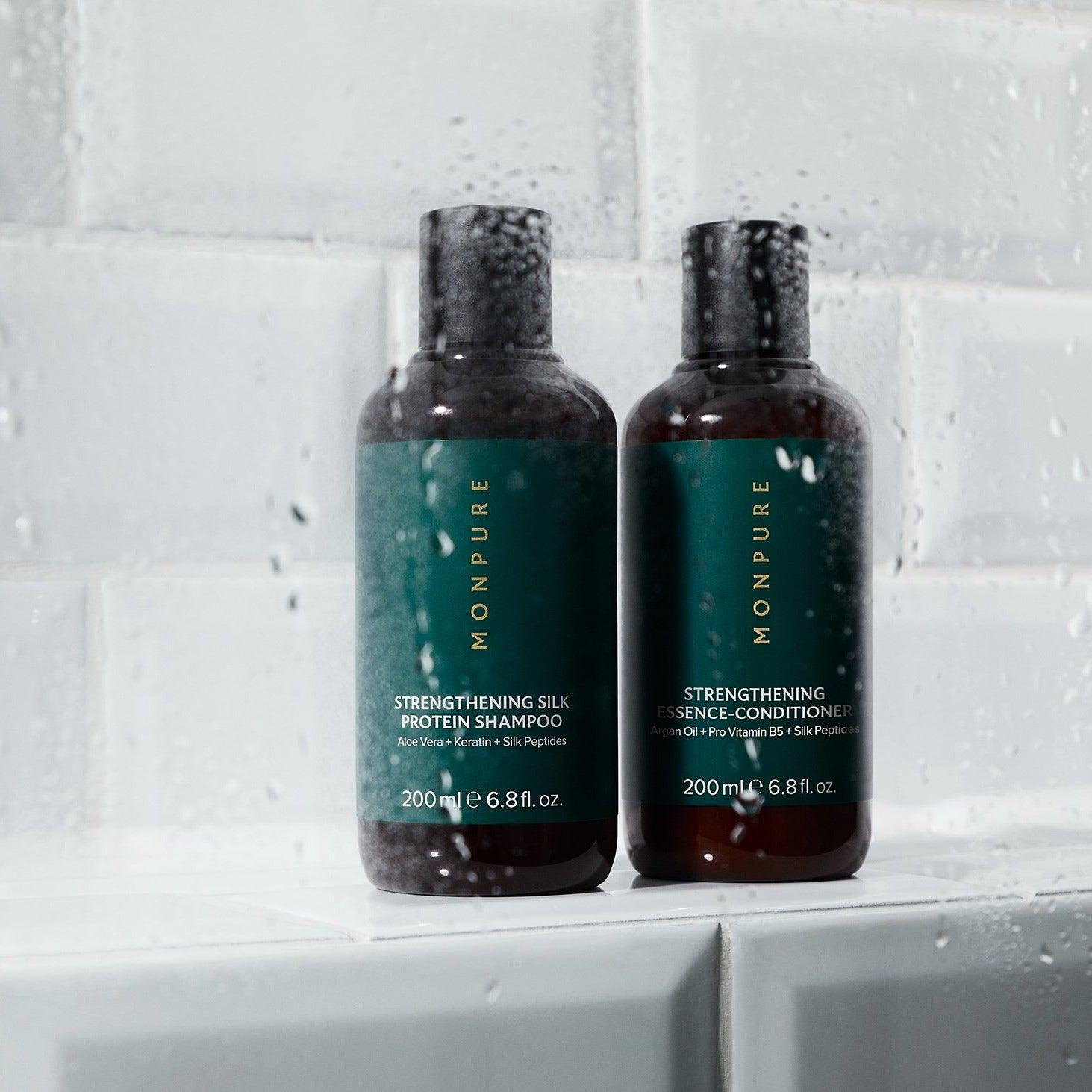 Conditioner:Aqua, Aloe Barbadensis Leaf Juice, Methyl Glucose Sesquistearate, Cocos Nucifera (Coconut) Oil, Argania Spinosa (Argan) Kernel Oil, Glycerin, Behentrimonium Methosulfate, Polyquaternium-7, Propylene Glycol, Stearamidopropyl Dimethylamine, Cetyl Alcohol, Cetearyl Alcohol, Sodium Lactate, Cocamidopropyl Betaine, Cetrimonium Chloride, Citric Acid, PEG-40 Hydrogenated Castor Oil, Phenoxyethanol, Panthenol (Pro Vitamin B5), SR-Spider Polypeptide-1 (Vegan Silk Peptides), Citrus Aurantium Bergamia (Bergamot) Fruit Oil, Tocopheryl Acetate (Vitamin E), Limnanthes Alba (Meadowfoam) Seed Oil, Butylene Glycol, Xanthan Gum, Tetrasodium EDTA, Cedrus Atlantica (Cedarwood) Bark Oil, Sodium Benzoate, 1,2-Hexanediol, Caprylyl Glycol, Parfum, Benzyl Salicylate, Coumarin, Alpha-Isomethyl Ionone, Limonene.
